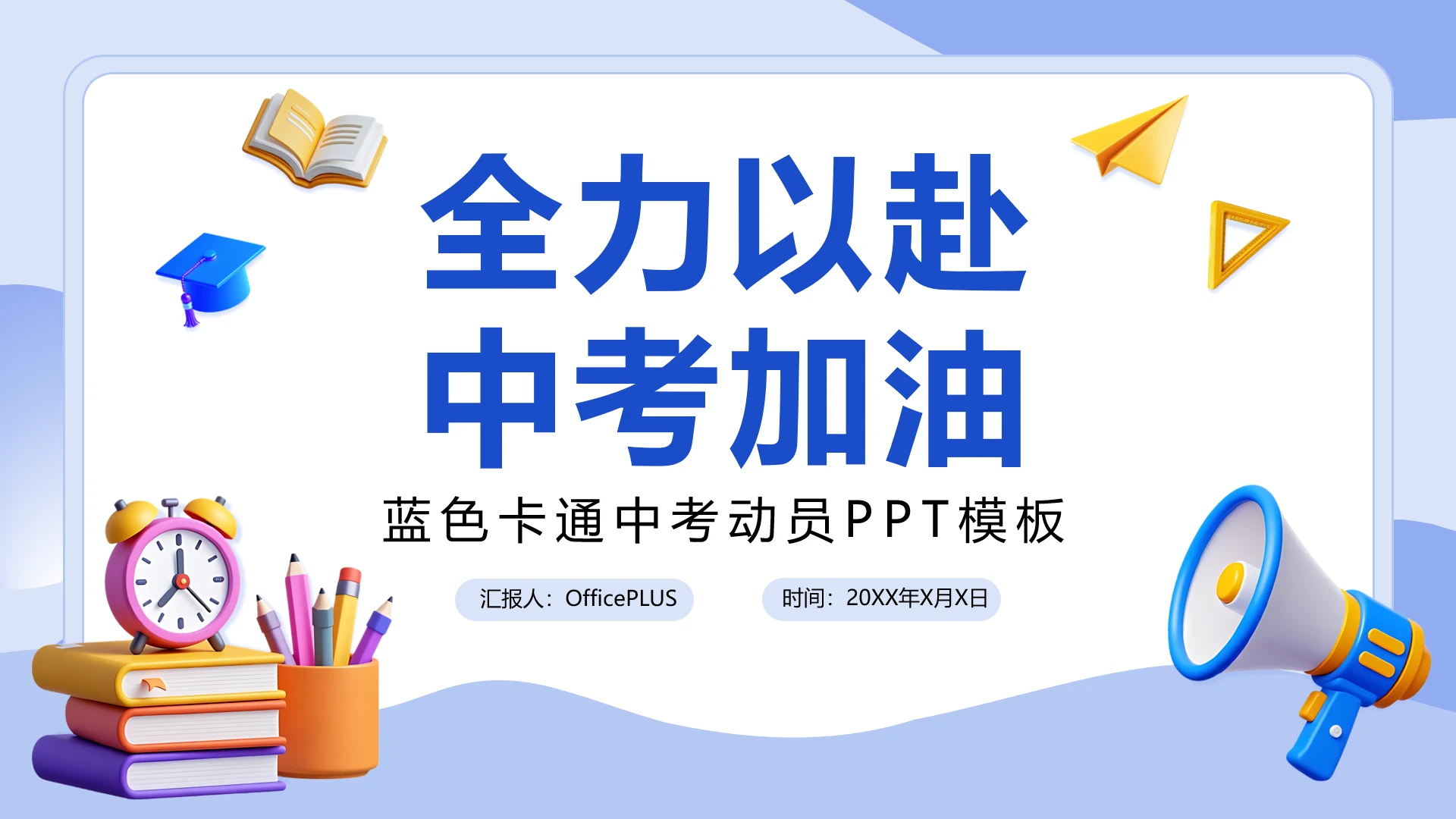 蓝色卡通中考动员PPT模板