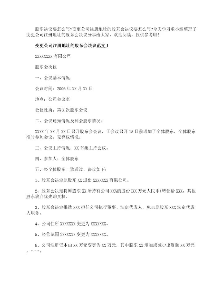 工商变更申请(包括股东会决议和公司章程修改).docx