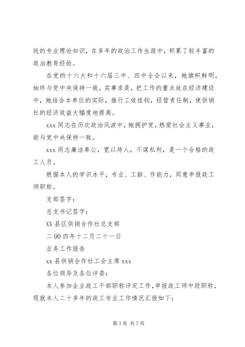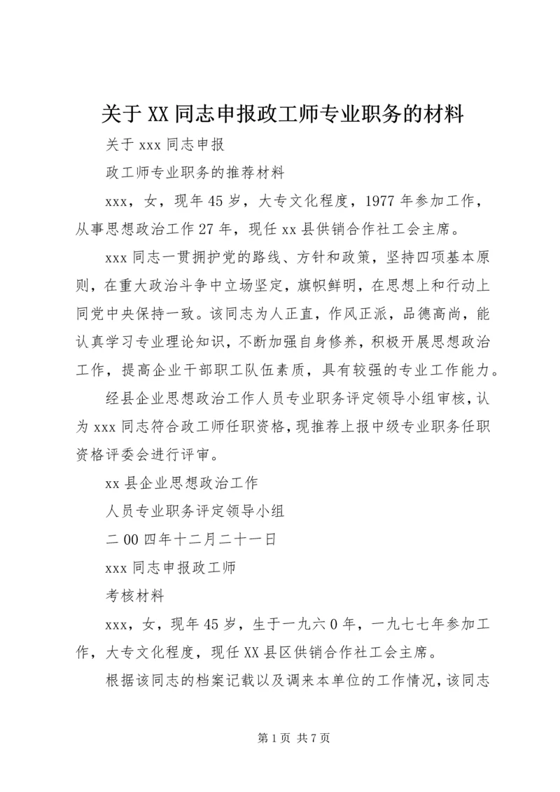 关于XX同志申报政工师专业职务的材料 (10).docx