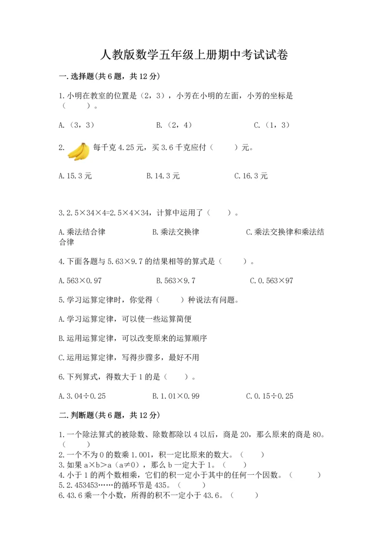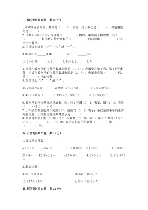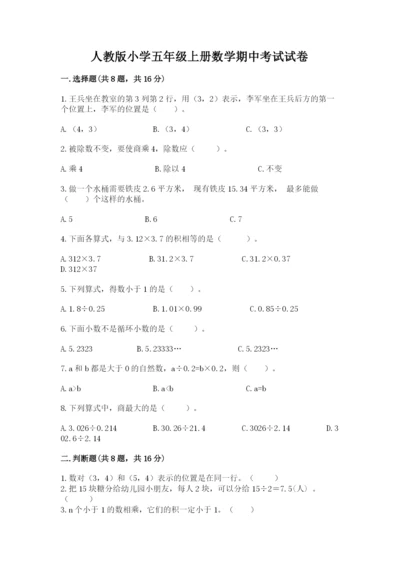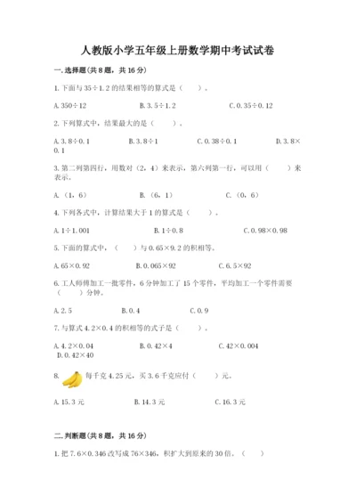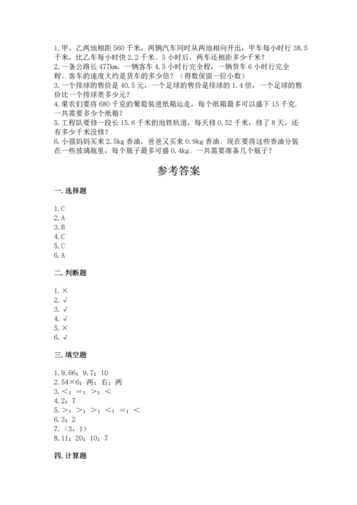 人教版数学五年级上册期中考试试卷附答案(夺分金卷).docx