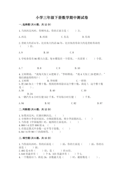 小学三年级下册数学期中测试卷及参考答案【培优a卷】.docx