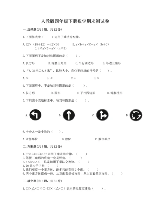 人教版四年级下册数学期末测试卷附参考答案(培优b卷).docx