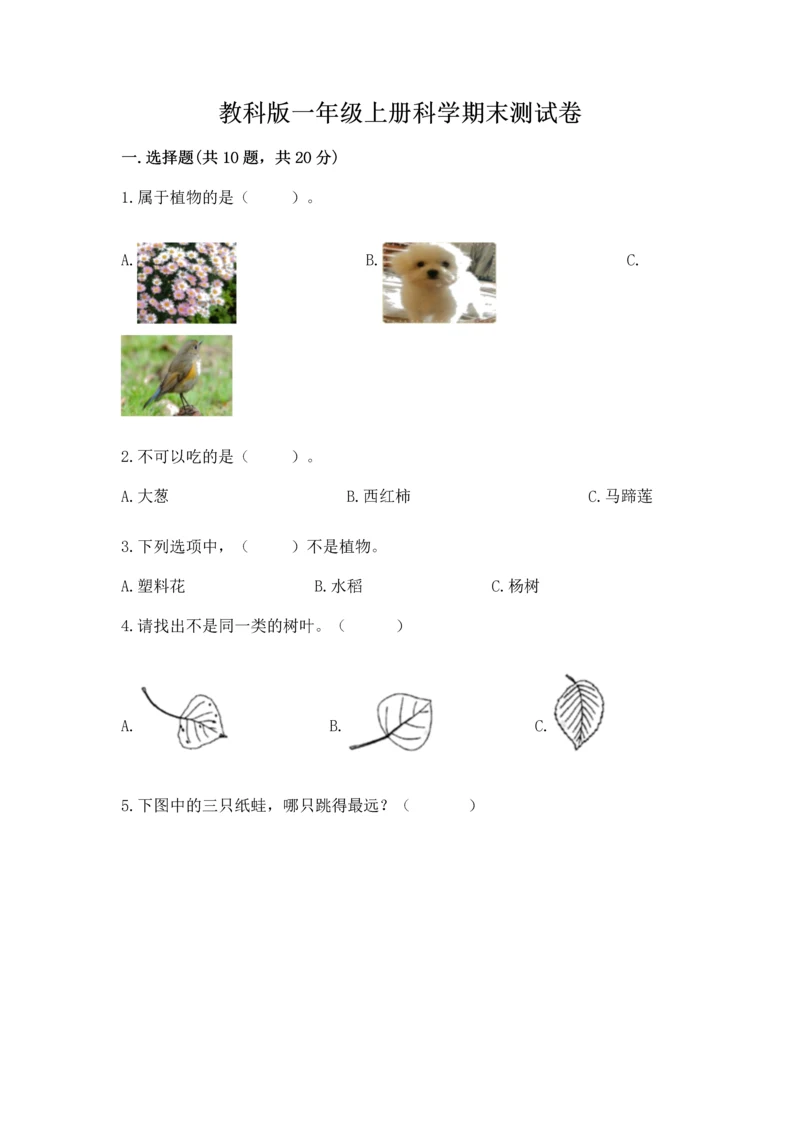 教科版一年级上册科学期末测试卷及参考答案.docx