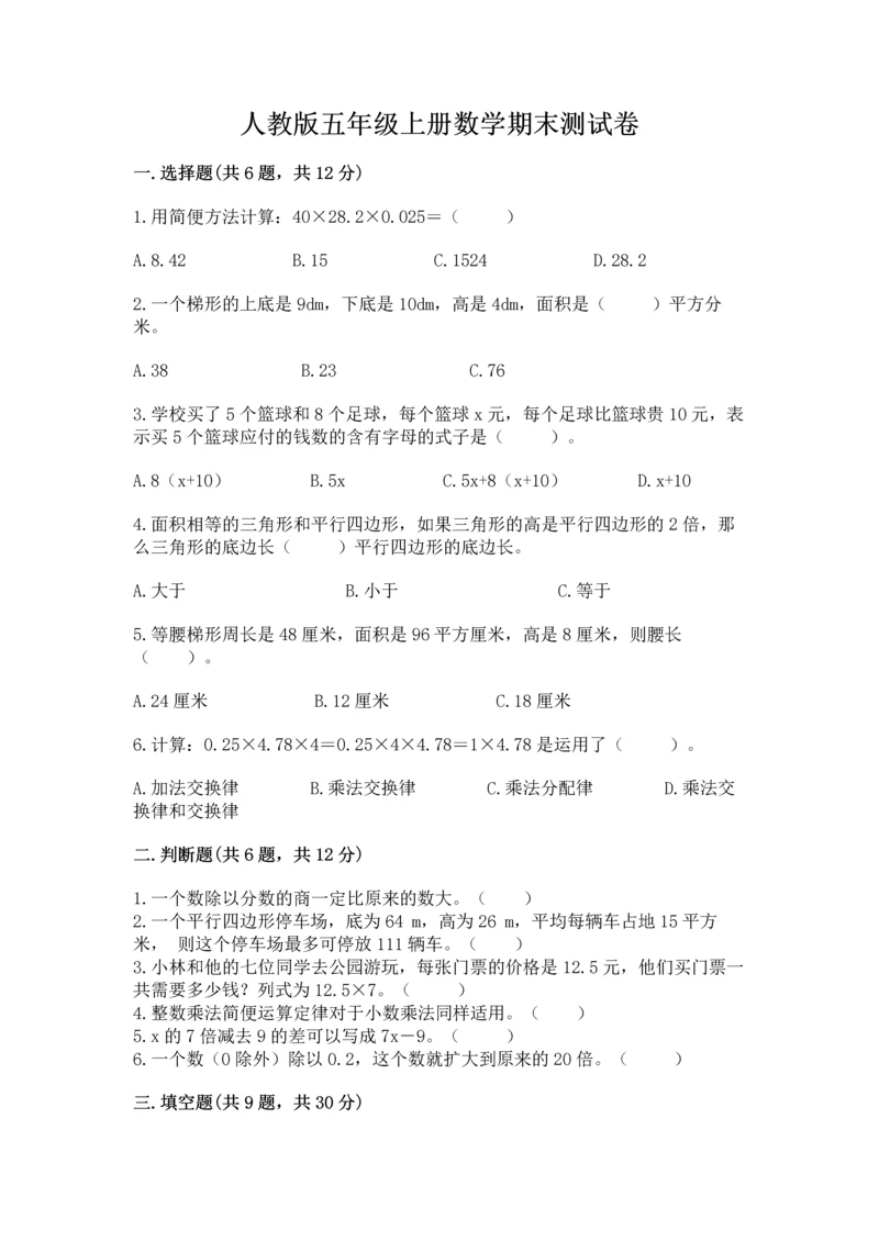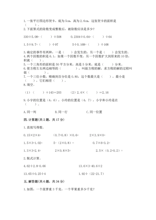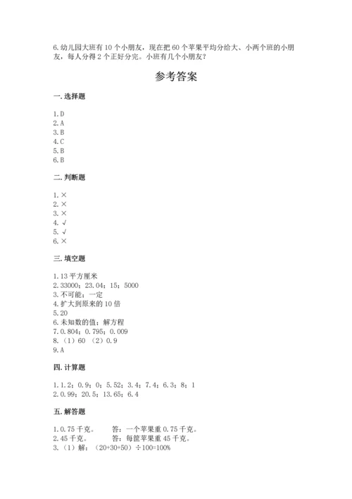 人教版五年级上册数学期末测试卷附答案(综合卷).docx