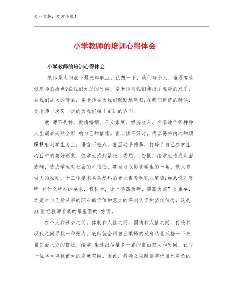 最新小学教师的培训心得体会优选例文26篇文档汇编.docx