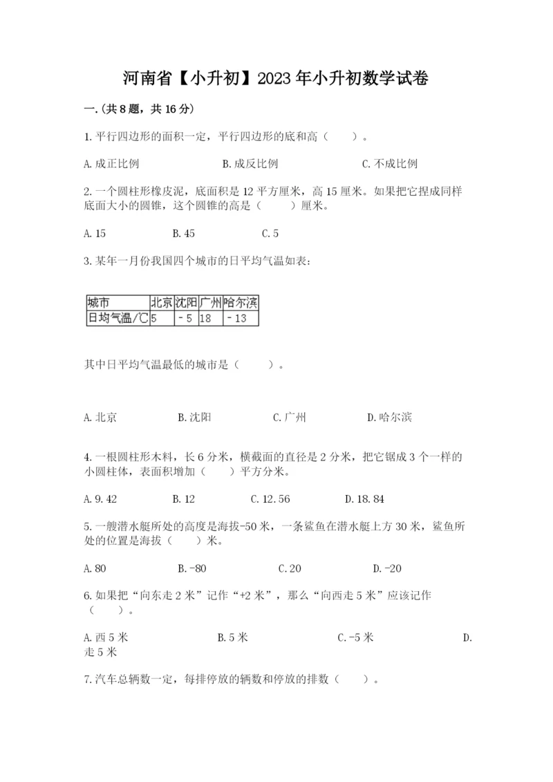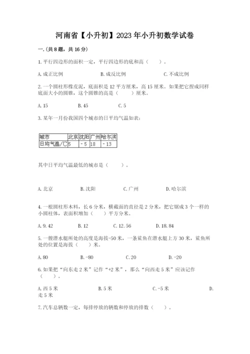 河南省【小升初】2023年小升初数学试卷带答案.docx