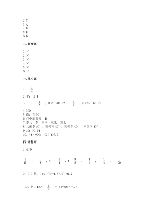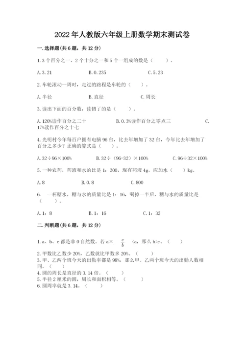 2022年人教版六年级上册数学期末测试卷a4版可打印.docx