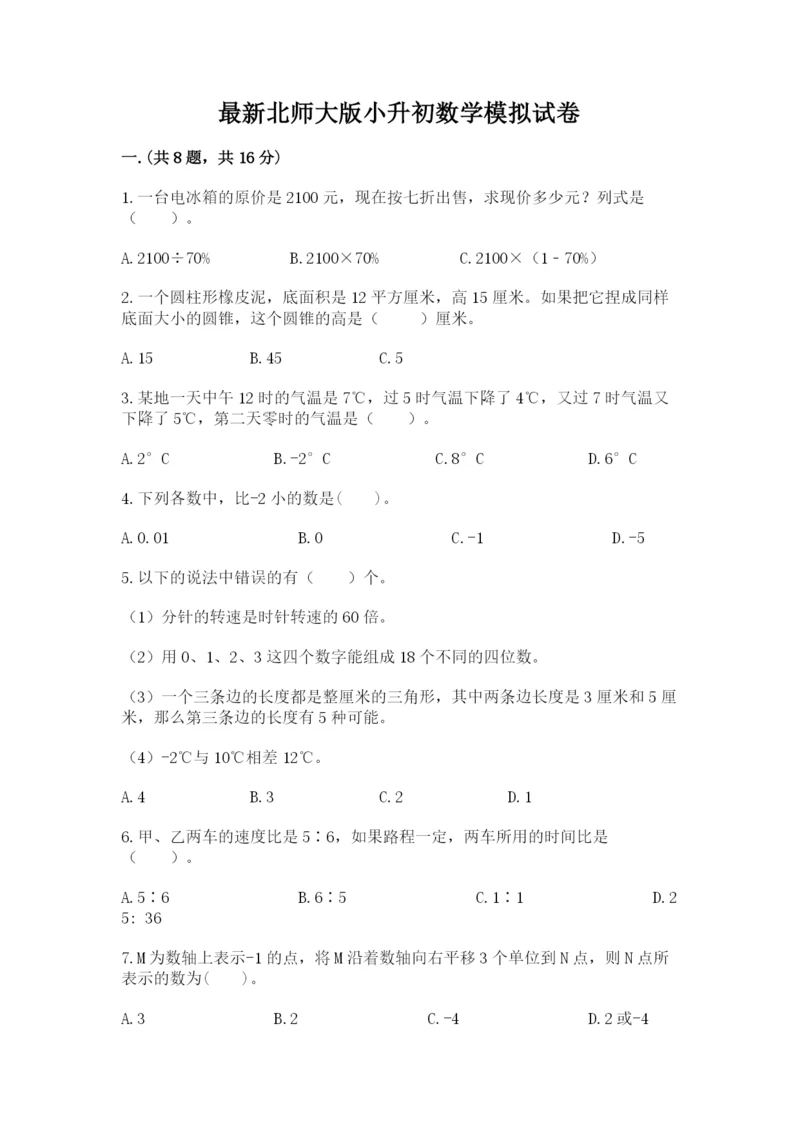 最新北师大版小升初数学模拟试卷附参考答案(综合卷).docx