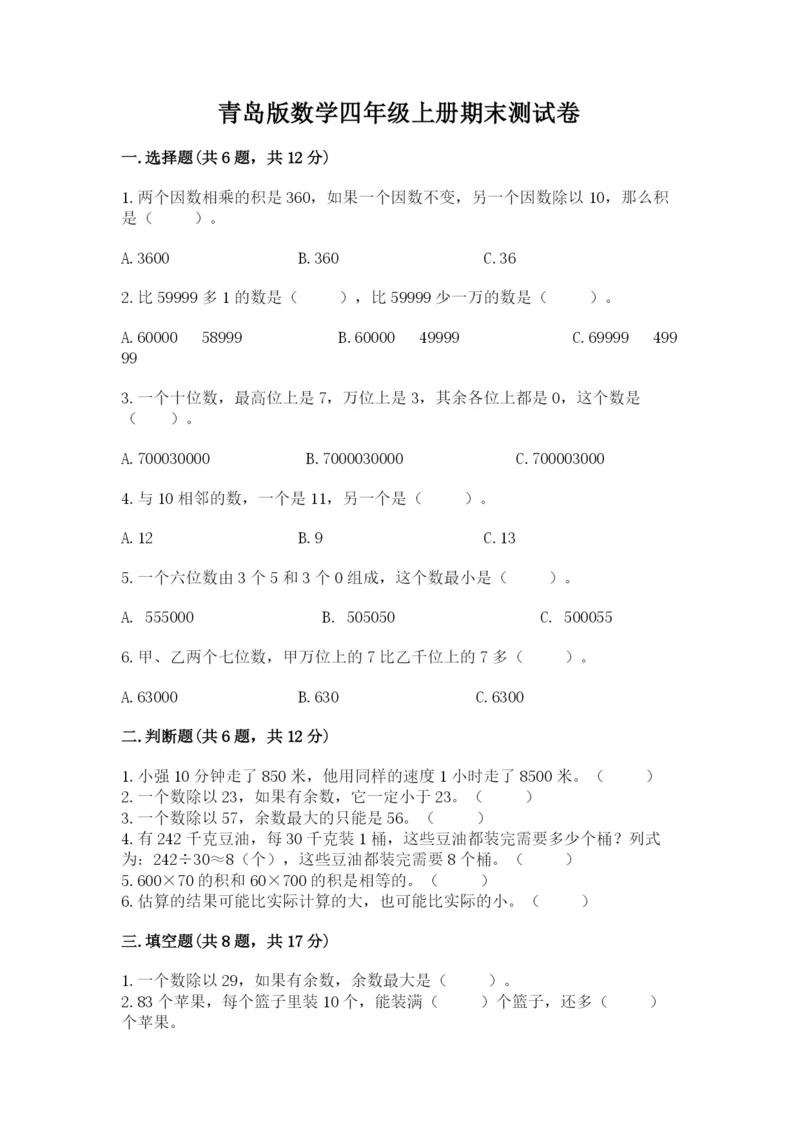青岛版数学四年级上册期末测试卷附参考答案(考试直接用).docx
