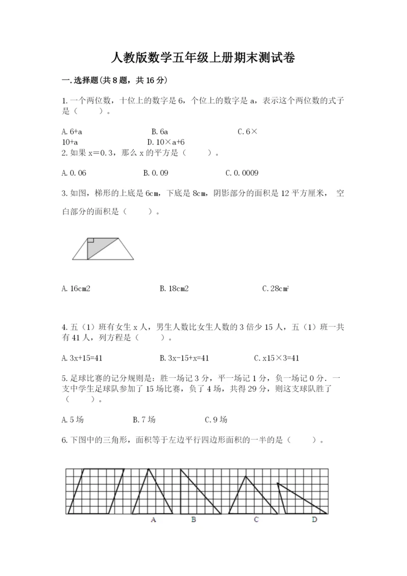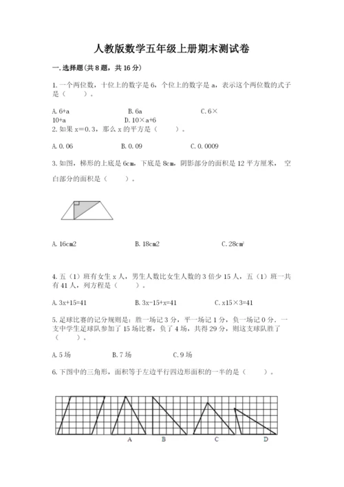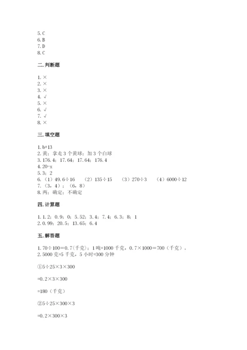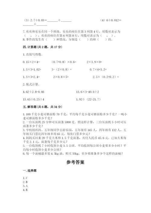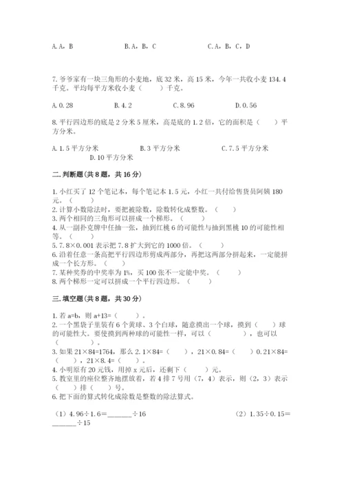 人教版数学五年级上册期末测试卷附答案(综合卷).docx