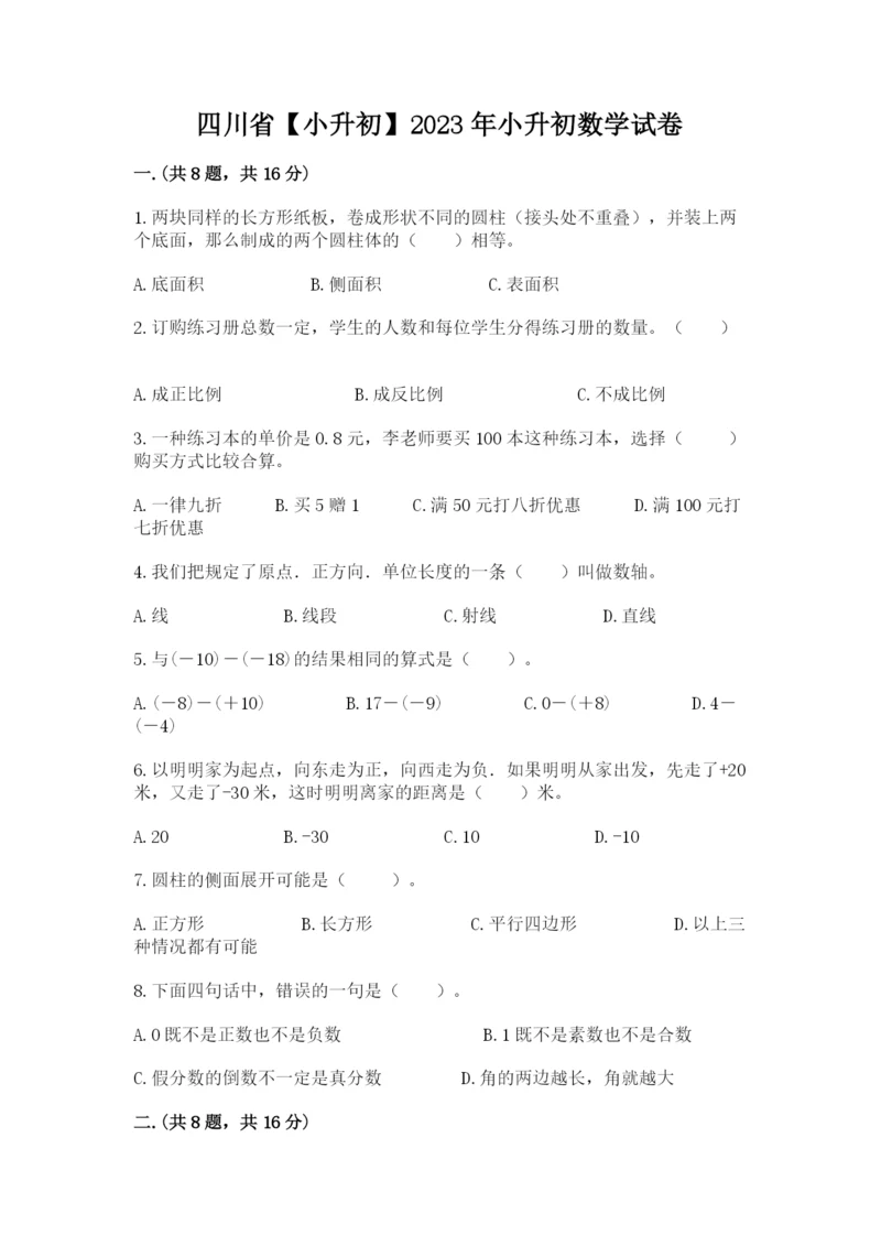 四川省【小升初】2023年小升初数学试卷含答案(精练).docx