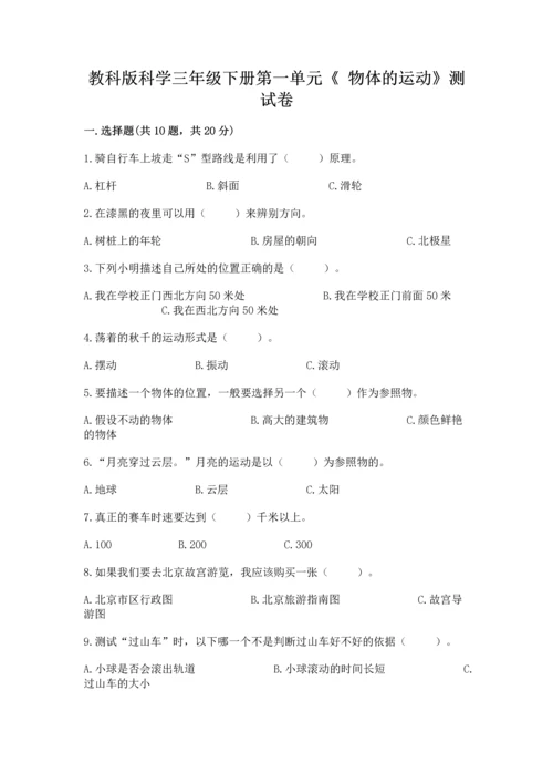 教科版科学三年级下册第一单元《 物体的运动》测试卷精品(全优).docx