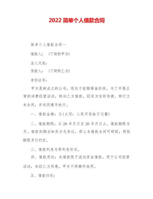 2022简单个人借款合同.docx