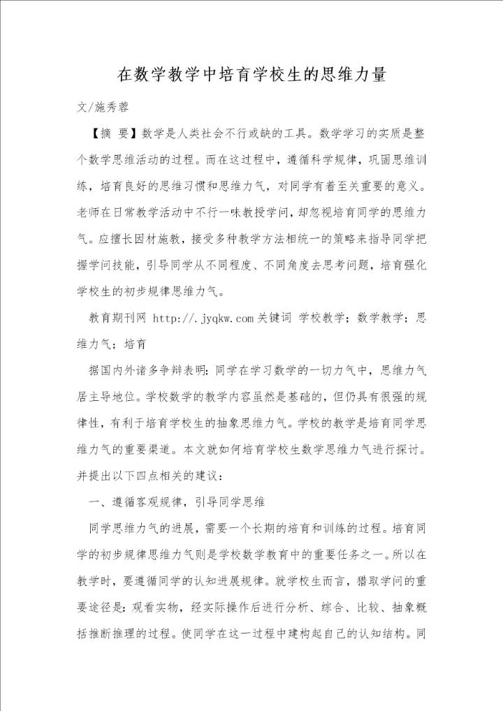 浅议如何在小学数学教学中培养学生数学思维能力.docx