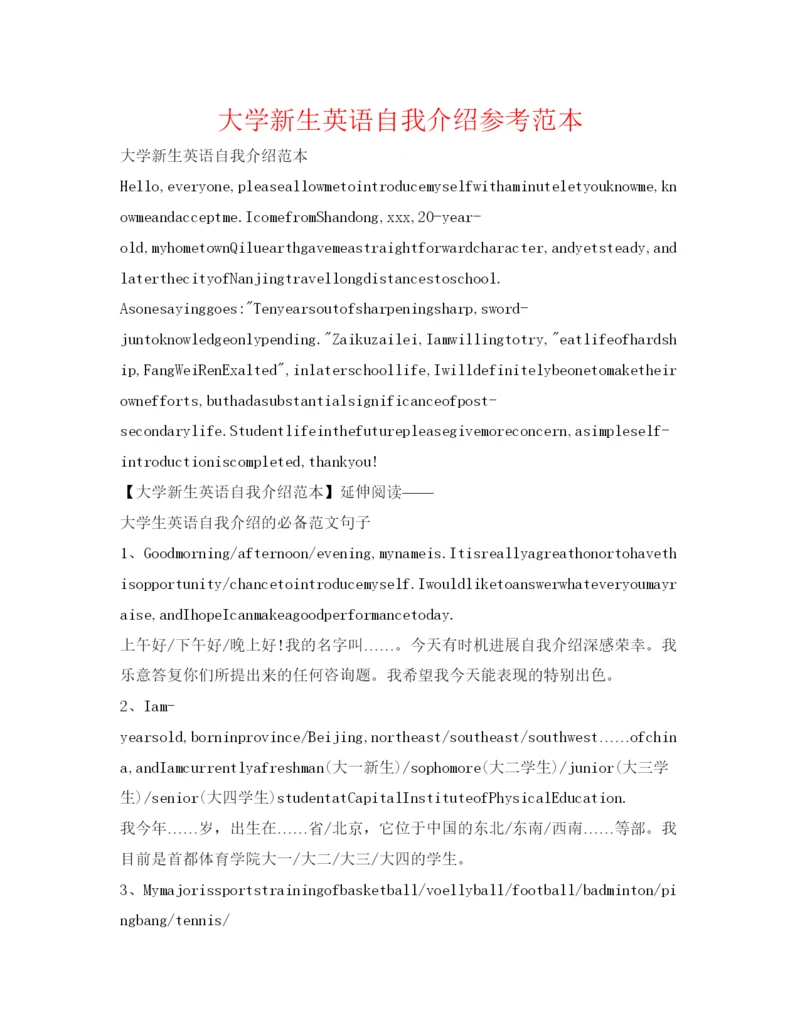 精编大学新生英语自我介绍参考范本.docx