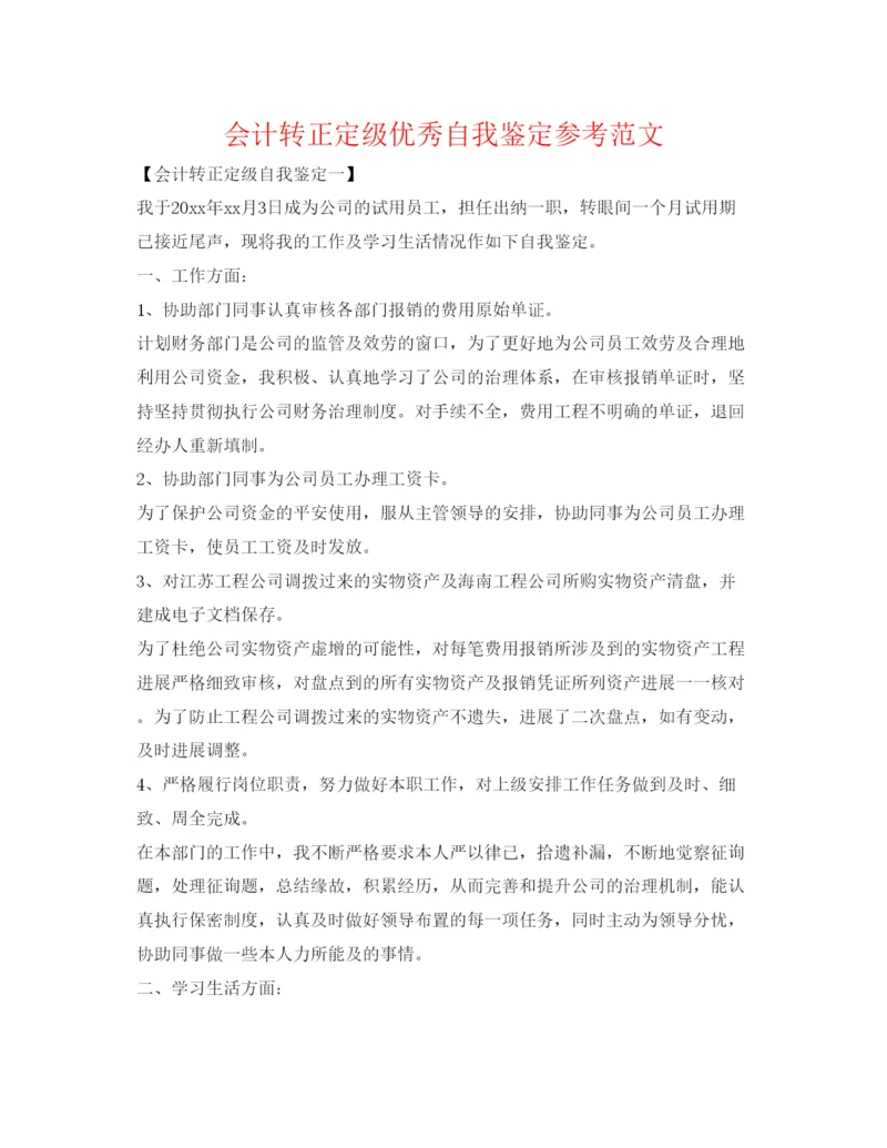 精编会计转正定级优秀自我鉴定参考范文.docx