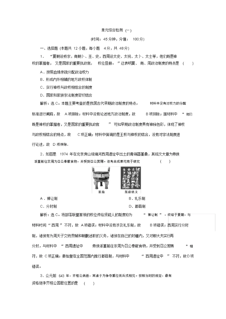 2023年高考历史第一轮复习政治文明历程第一单元古代中国的政治制度综合模拟新课标必修1.docx