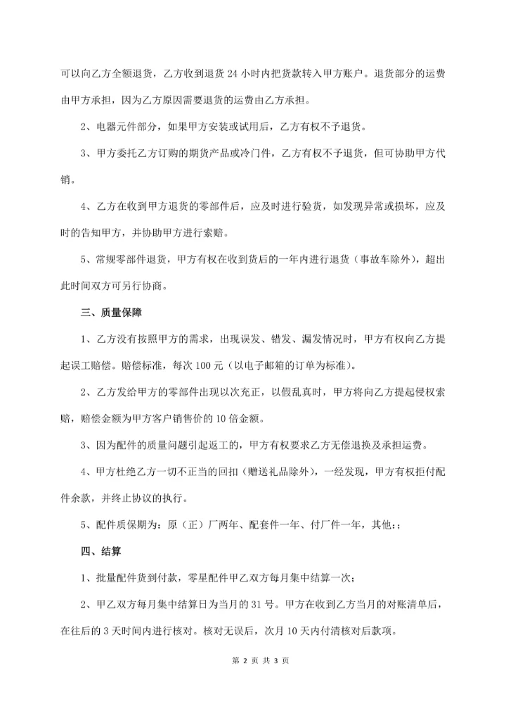 汽车零部件采购协议