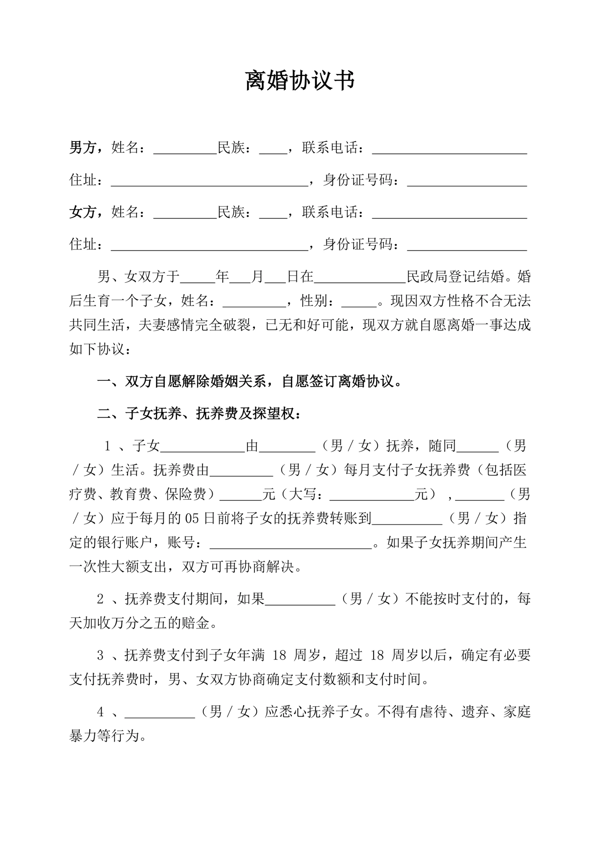 有财产无债务1个子女