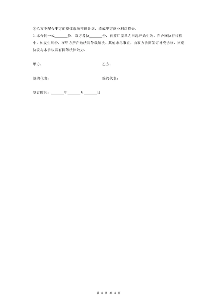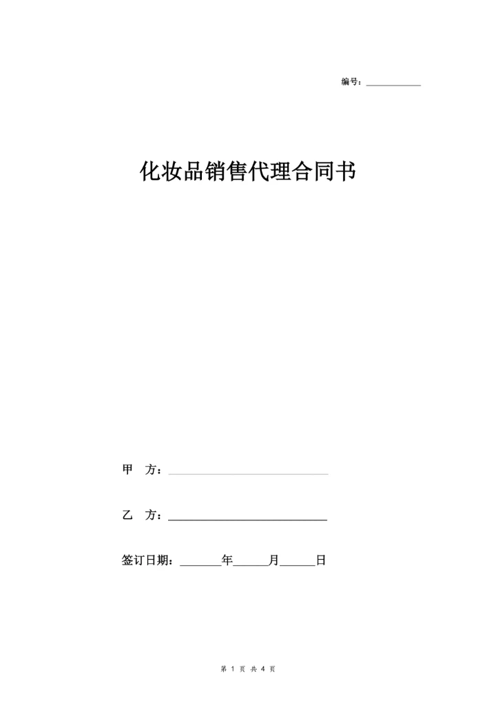 化妆品销售代理合同协议样本