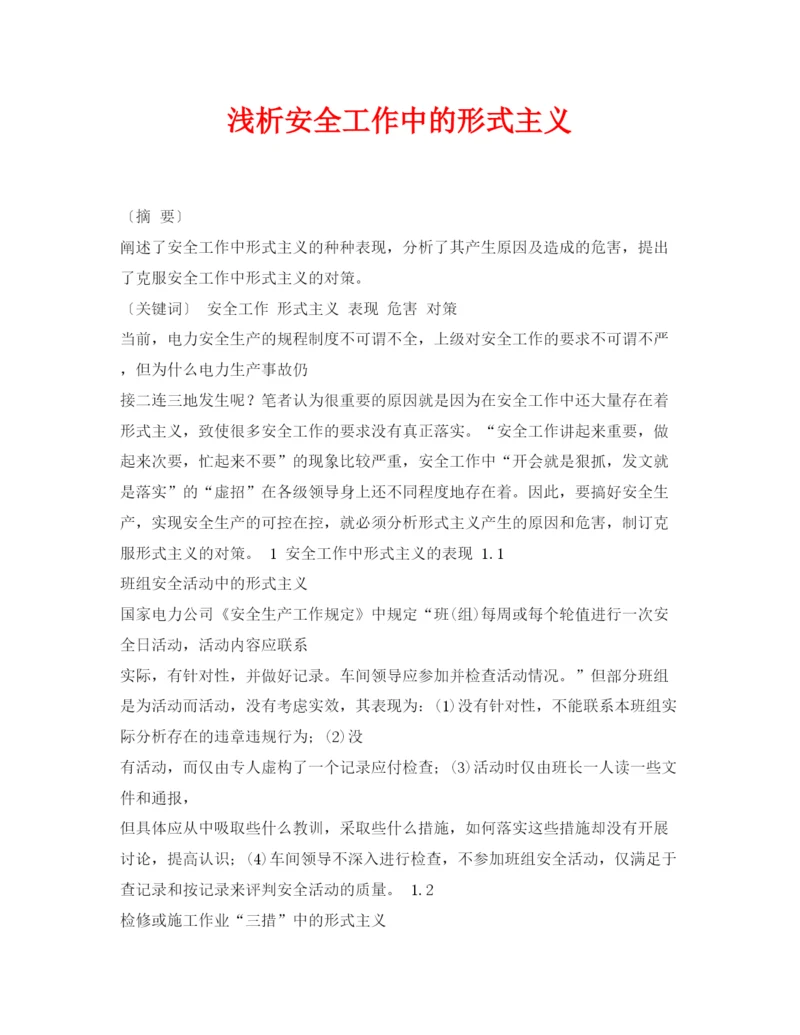 【精编】《安全管理论文》之浅析安全工作中的形式主义.docx
