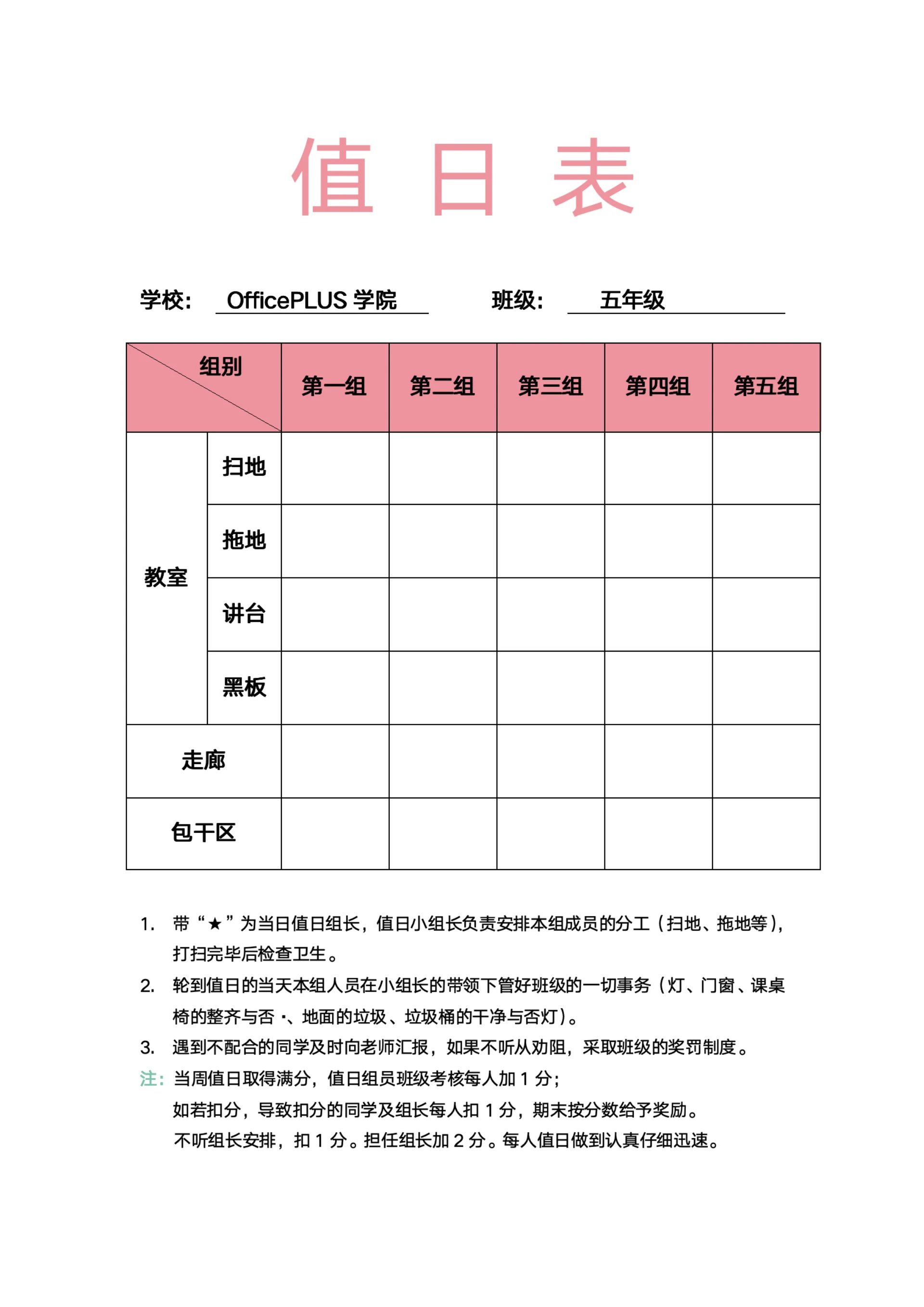 可爱风班级值日表