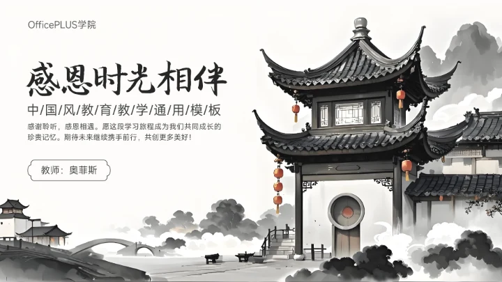 绿色中国风清新淡雅教学通用PPT模板